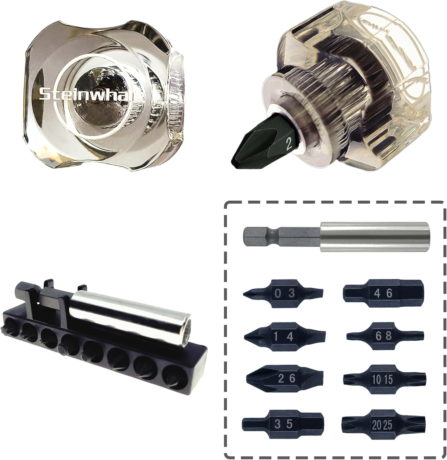 - 【Compact EDC】 Our product boasts an ultra-compact design that excels in tight spots and offers exceptional portability. Designed with adaptability in mind, both the handle and double-headed bit effortlessly navigate narrow spaces. The strong magnetic slot securely holds our provided 1/4-inch bits, ensuring a reliable grip for precise operations. Added convenience comes in the form of magnetized bits, attracting screws and enabling quick fastening.